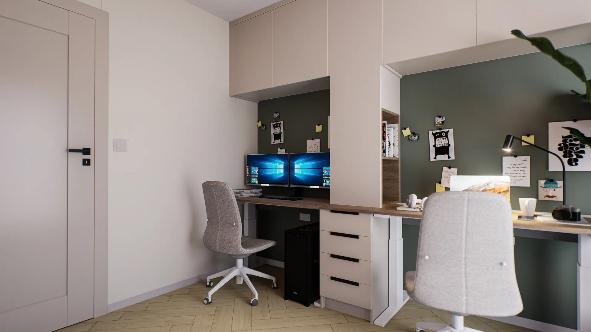 Choosing a home office space depends primarily on available space and its functionality. Ideally, you can designate a separate room for the office, allowing you to clearly separate your work area from the rest of the home. However, in smaller apartments, it’s worth getting creative – alcoves, corners, or the space under the stairs can become ideal office spaces.