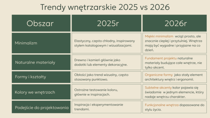 Trendy wnętrzarskie 2025 vs 2026 – ewolucja zamiast rewolucji