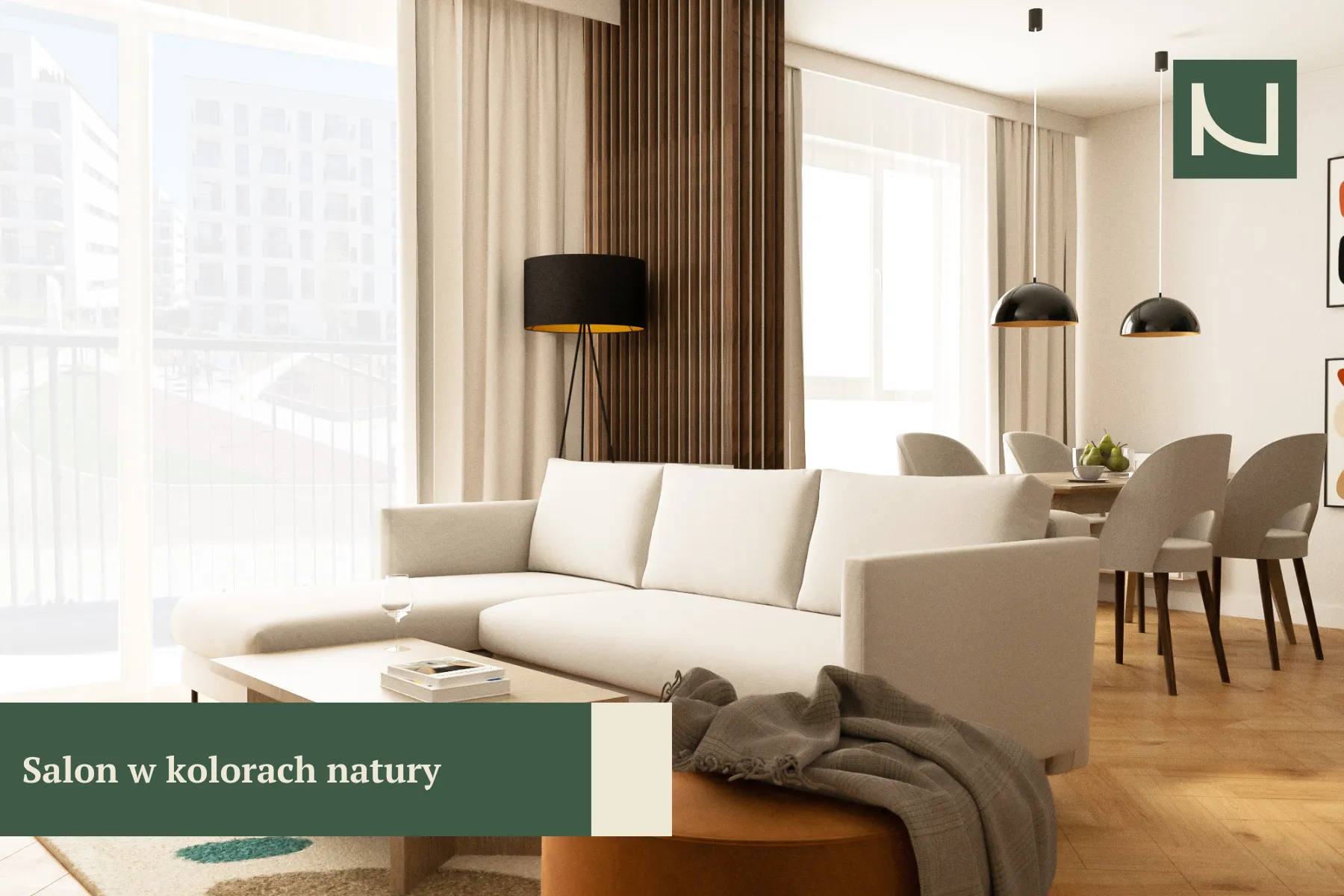 Pamiętajmy przy tym o zachowaniu proporcji i zachowaniu zasady trzech kolorów. Dodatkowo, w salonie w kolorach natury świetnie sprawdza się zasada kontrastu. Jeżeli wybieramy meble w kolorze natury, np. ceglaną sofę, ustawmy ją na jasnej beżowej ścianie. I na odwrót – jeżeli stawiamy na ściany w mocnych kolorach, dobierzmy do nich neutralne kolorystycznie meble. Możemy za to z powrotem poszaleć w dodatkach, dodając inne, komplementujące kolory natury.