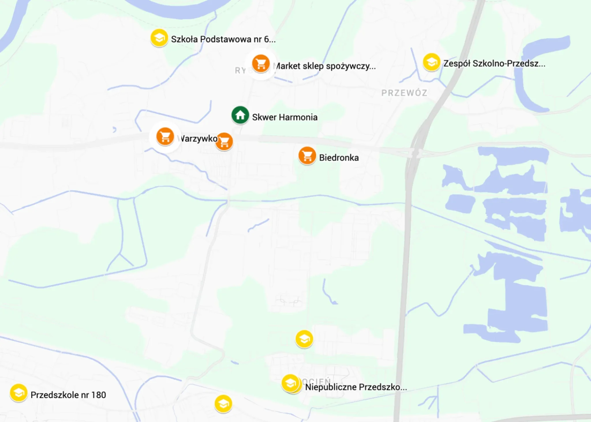 Skwer Harmonia to propozycja, która może zainteresować osoby poszukujące spokojniejszej lokalizacji w obrębie Krakowa, z dala od intensywnego tempa ścisłego centrum. Osiedle będzie odpowiednie dla tych, którzy cenią sobie niską intensywność zabudowy, oraz możliwość zamieszkania w bardziej kameralnym otoczeniu.  Lokalizacja na południowo-wschodnich obrzeżach Krakowa może być szczególnie atrakcyjna dla osób pracujących zdalnie, przedsiębiorców prowadzących działalność w domu, a także dla tych, którzy dojeżdżają na co dzień poza Kraków – dzięki łatwemu dostępowi do S7 i A4. Również odległość do obiektów użyteczności publicznej jak szkół czy żłobków w przypadku poruszania się transportem samochodowym nie będzie stanowił problemu.