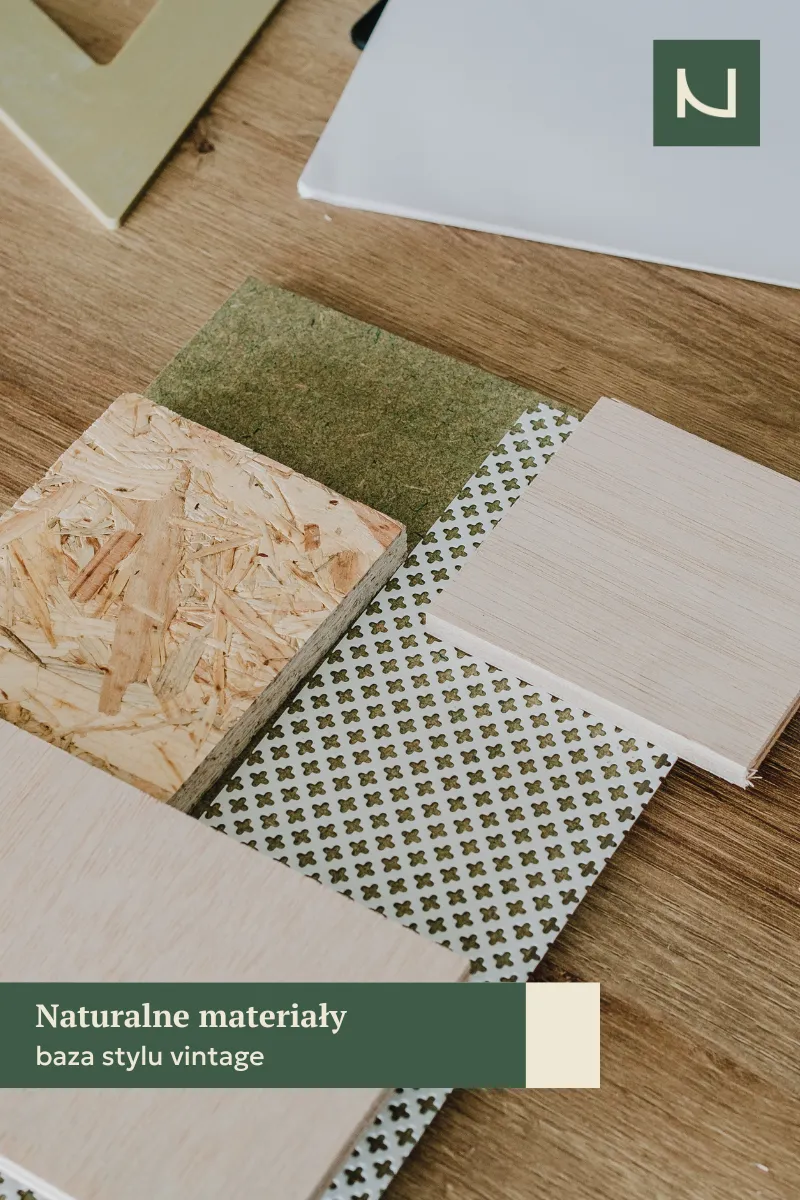 Naturalne materiały w wystroju wnętrz to podstawa w aranżacji wnętrz w stylu vintage. W naszych projektach często sięgamy po: