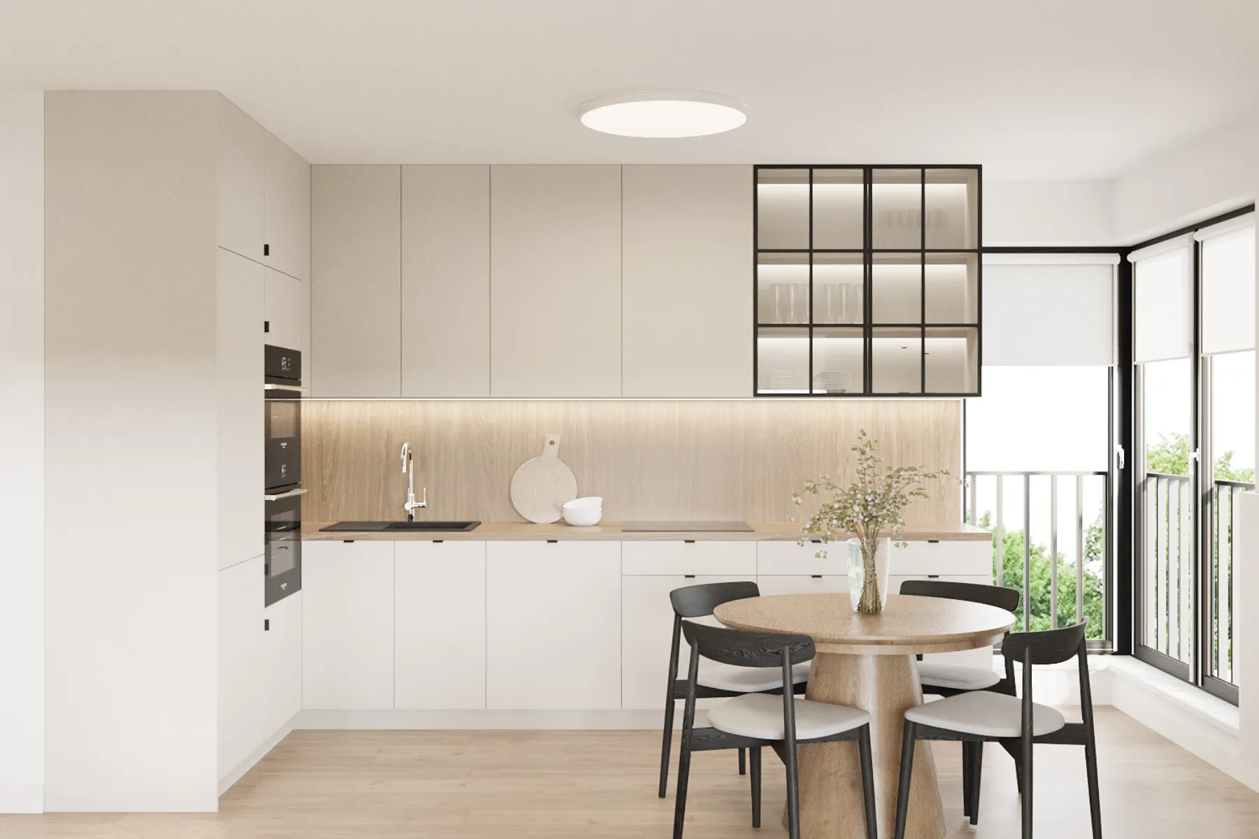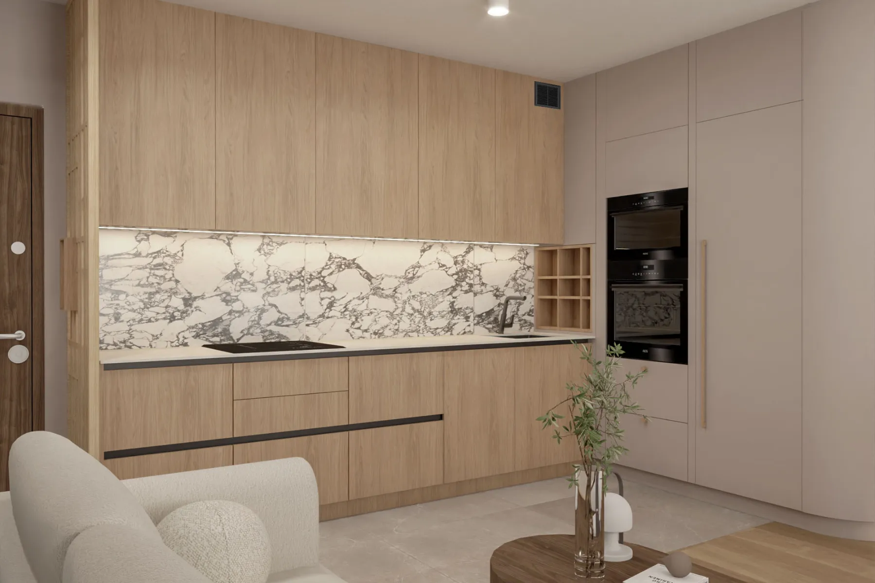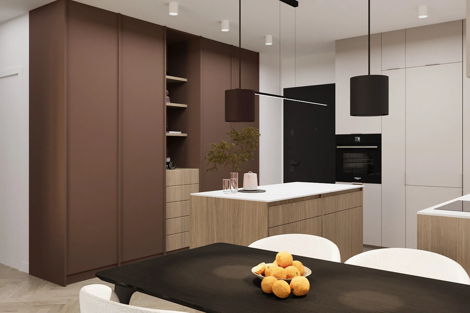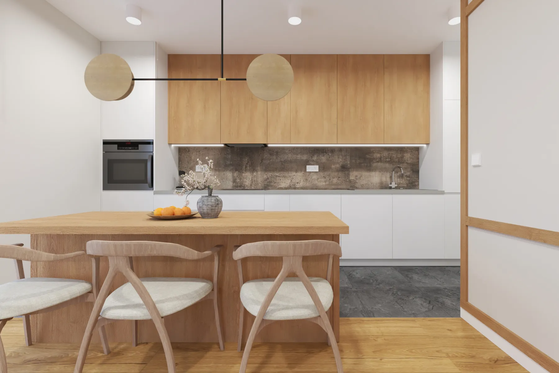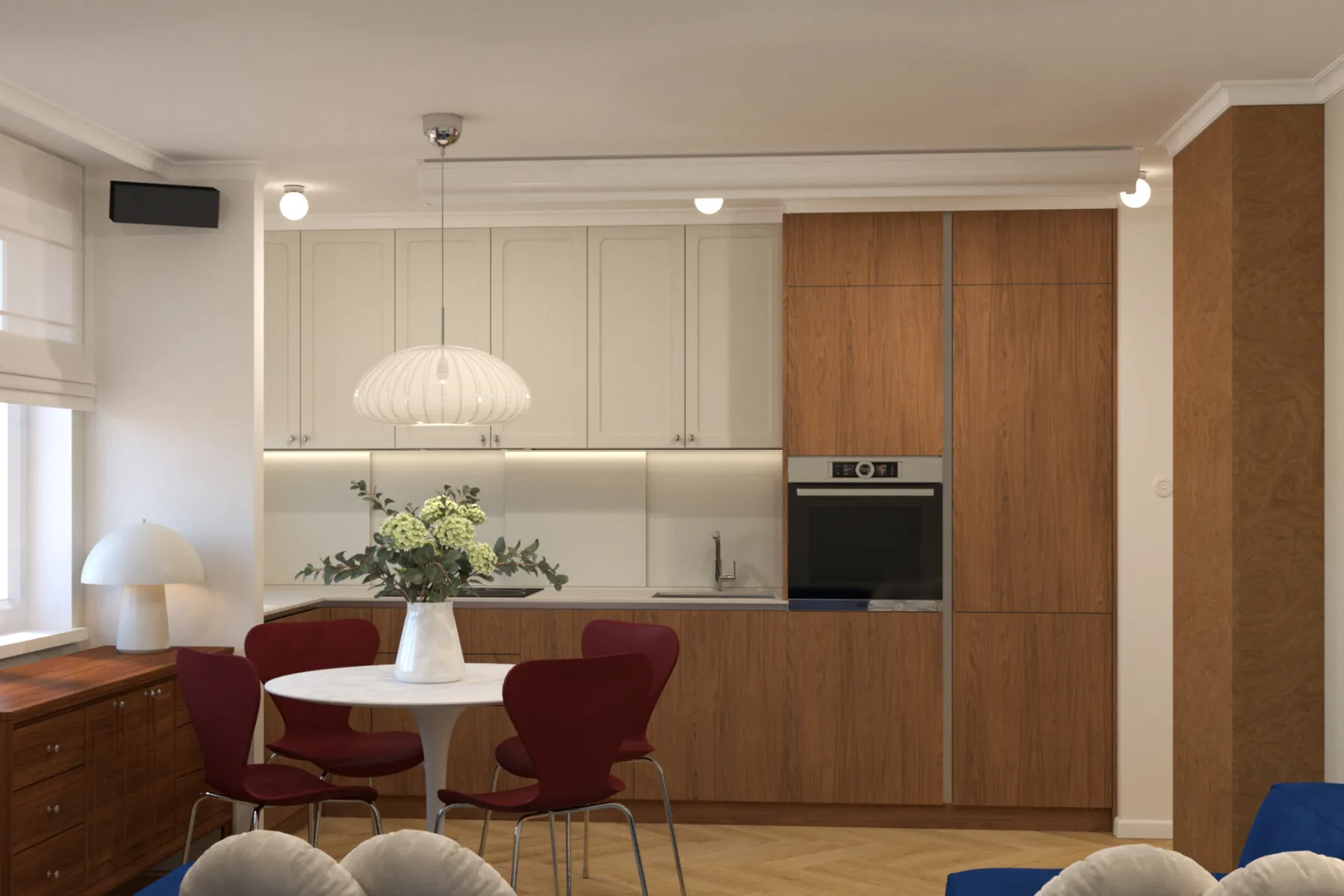 - Możliwość zamknięcia drzwi sprawia, że łatwo odgrodzić się od reszty domu, co ogranicza rozprzestrzenianie się zapachów z kuchni po całym domu.