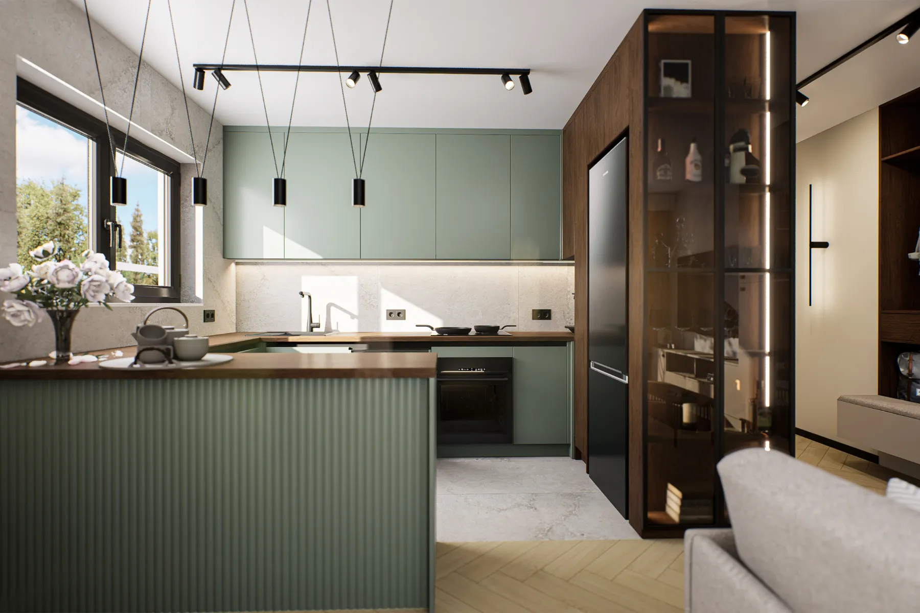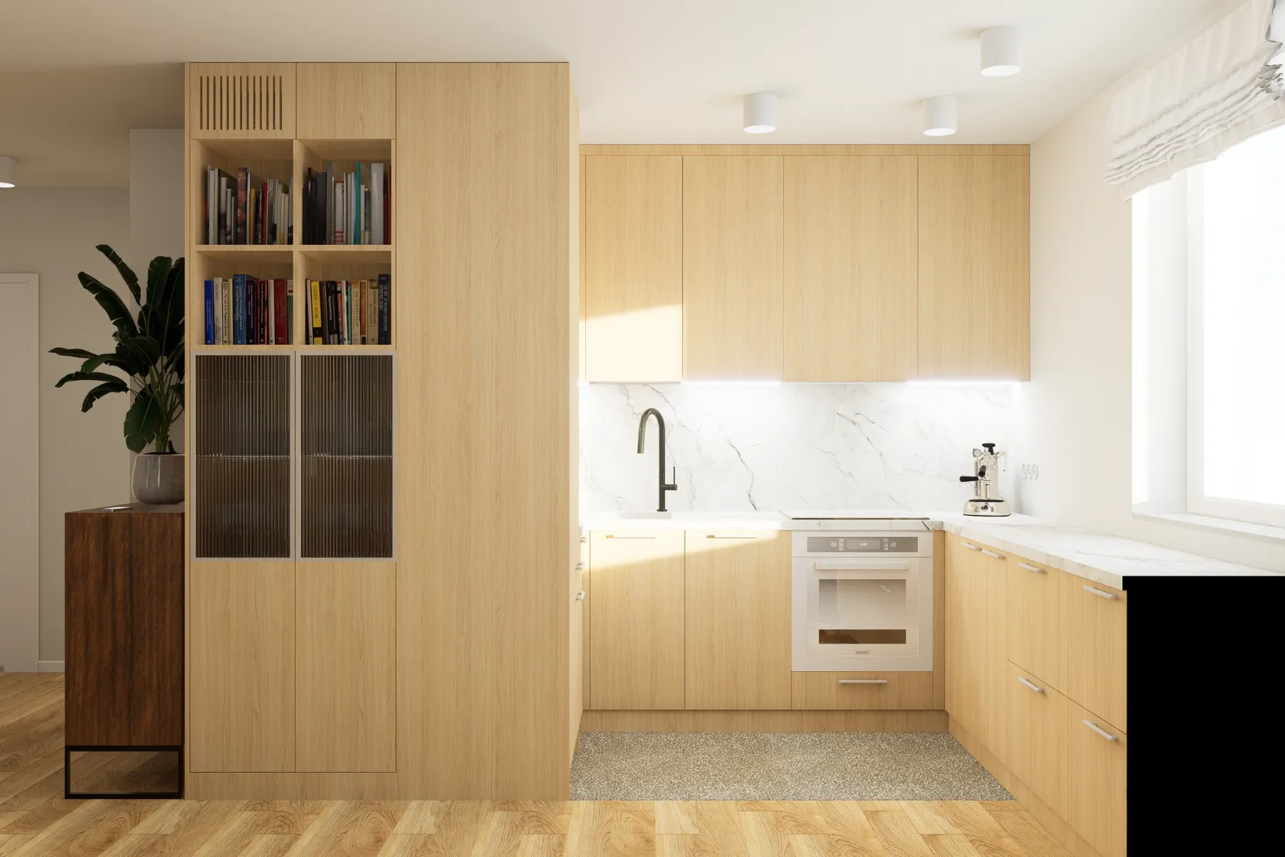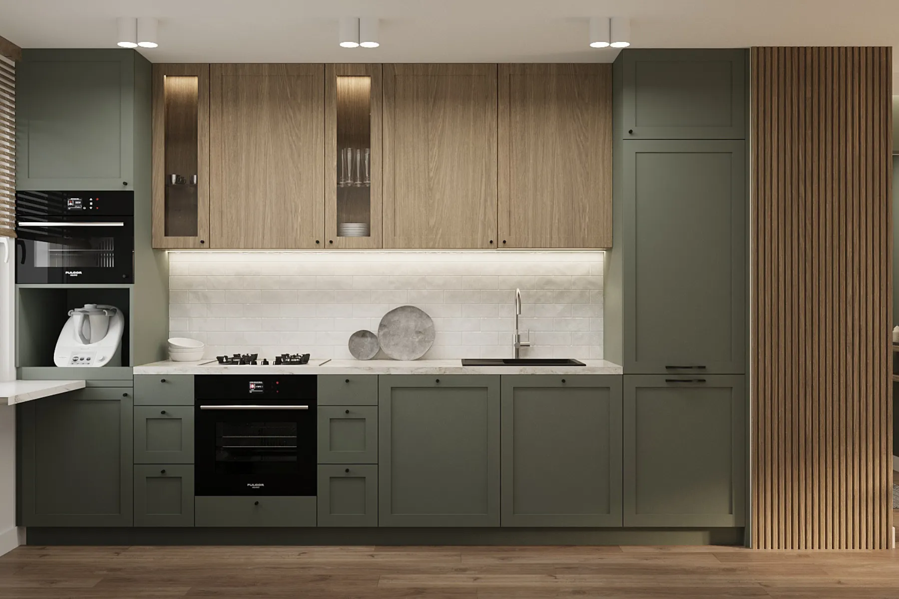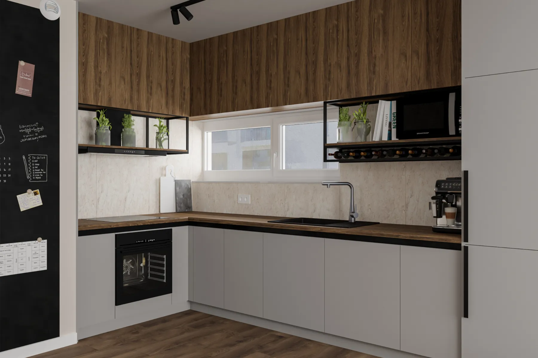 - Systemy i rozkład półek, szuflad – dzięki dobrze zaplanowanemu rozmieszczeniu półek, szuflad i sprzętów w kuchni będzie Ci łatwiej utrzymać porządek, przygotowanie posiłków będzie znacznie szybsze, a poruszanie się po kuchni intuicyjne i bezkolizyjne.