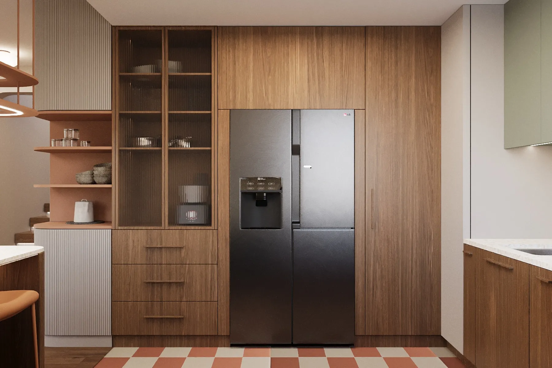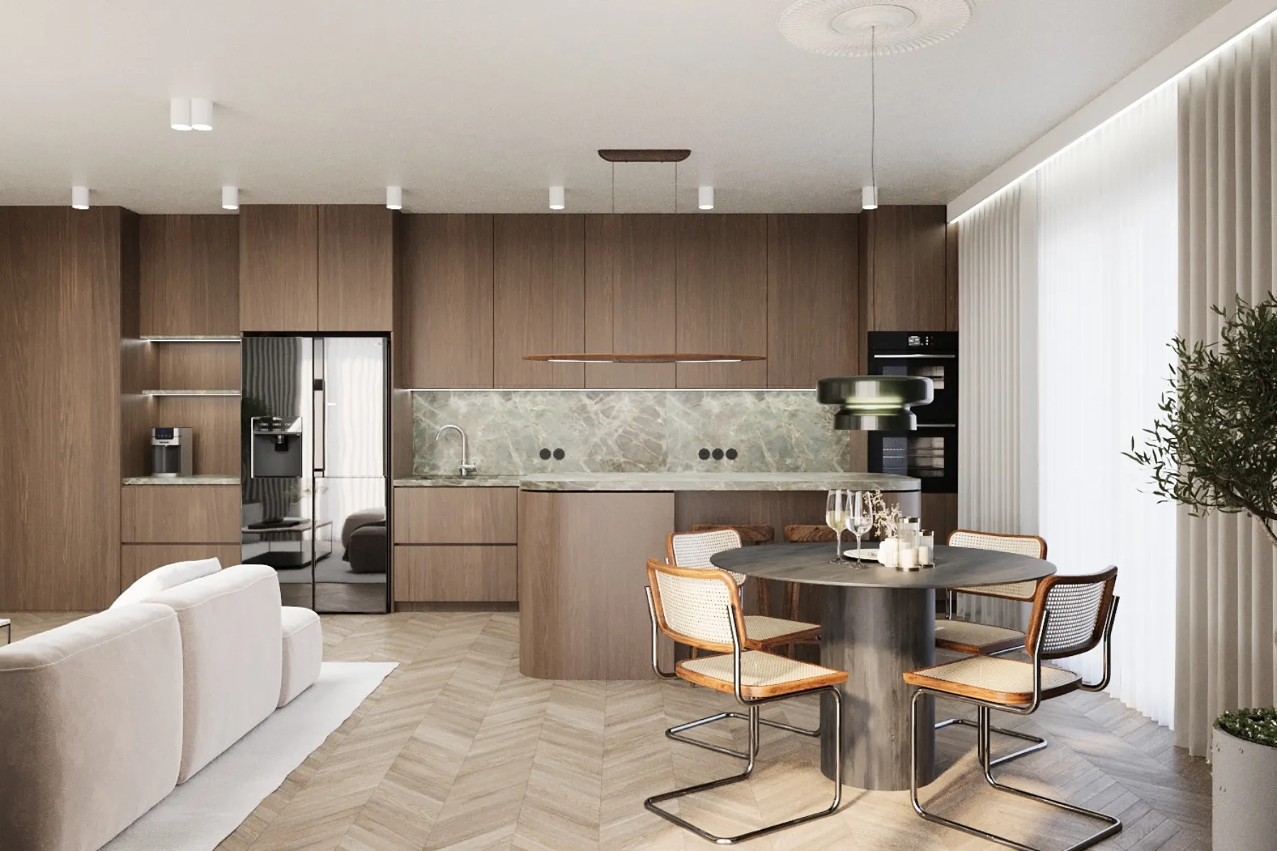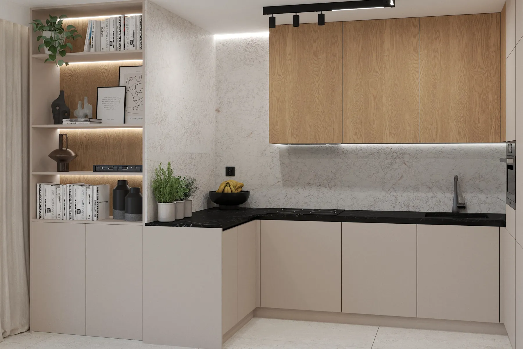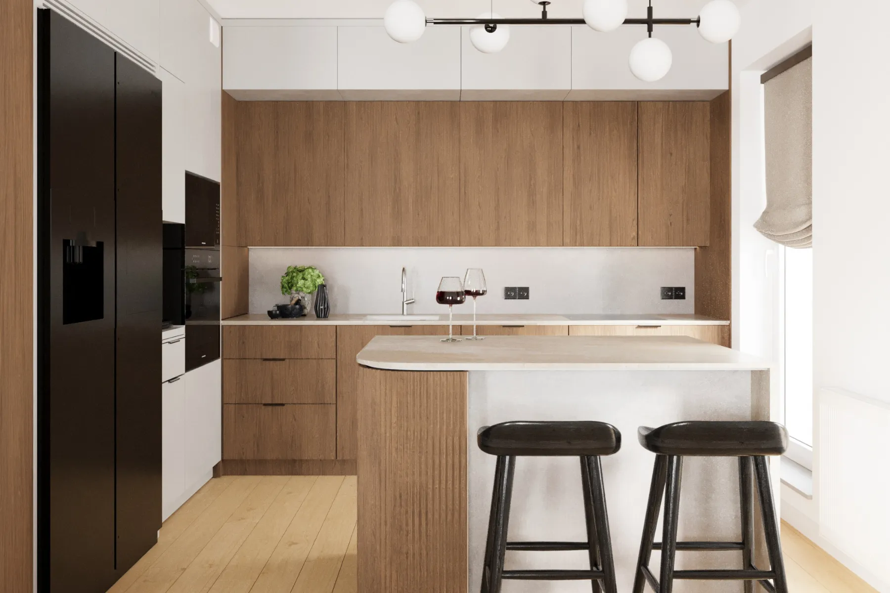 - Systemy i rozkład półek, szuflad – dzięki dobrze zaplanowanemu rozmieszczeniu półek, szuflad i sprzętów w kuchni będzie Ci łatwiej utrzymać porządek, przygotowanie posiłków będzie znacznie szybsze, a poruszanie się po kuchni intuicyjne i bezkolizyjne.