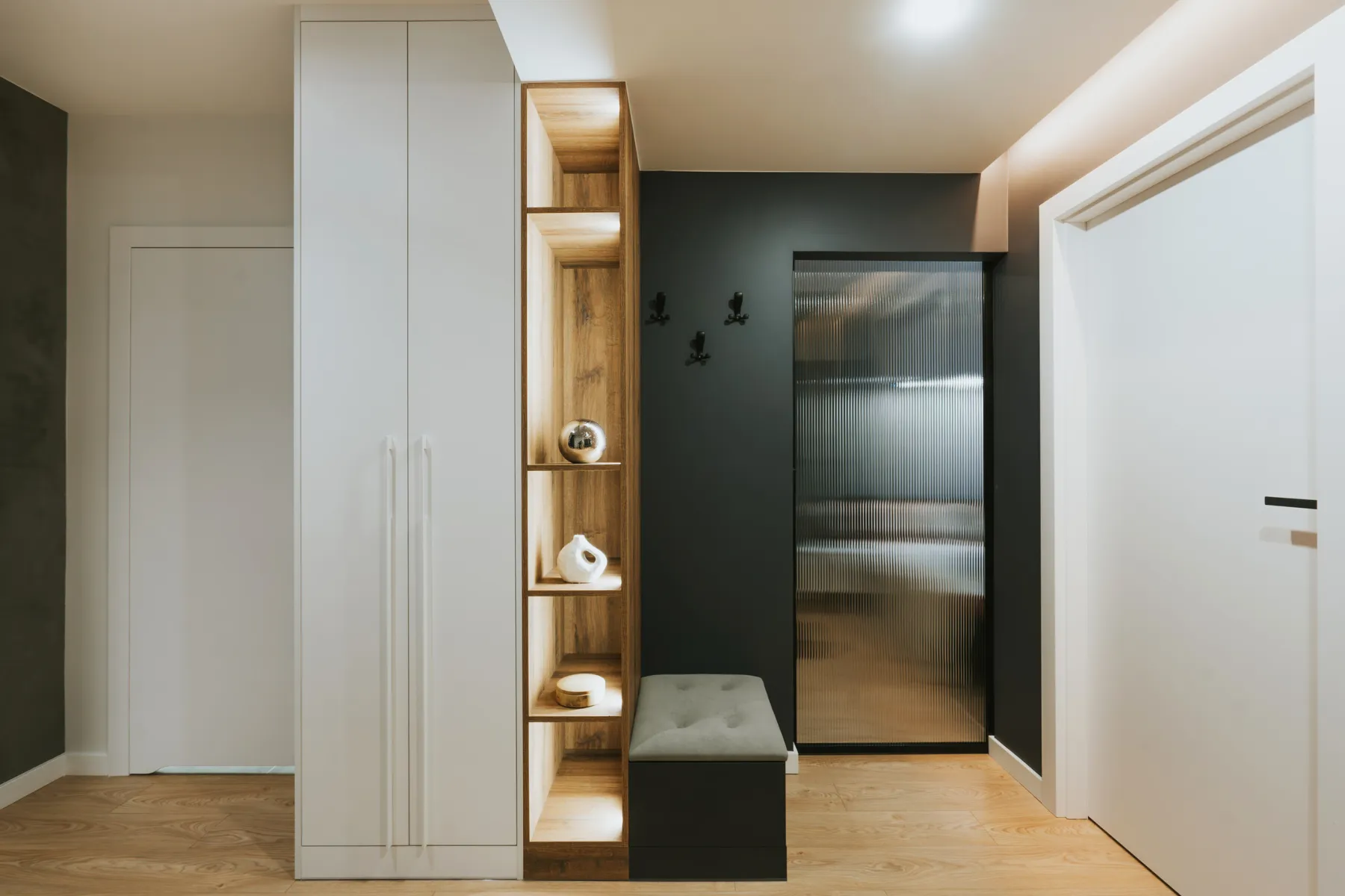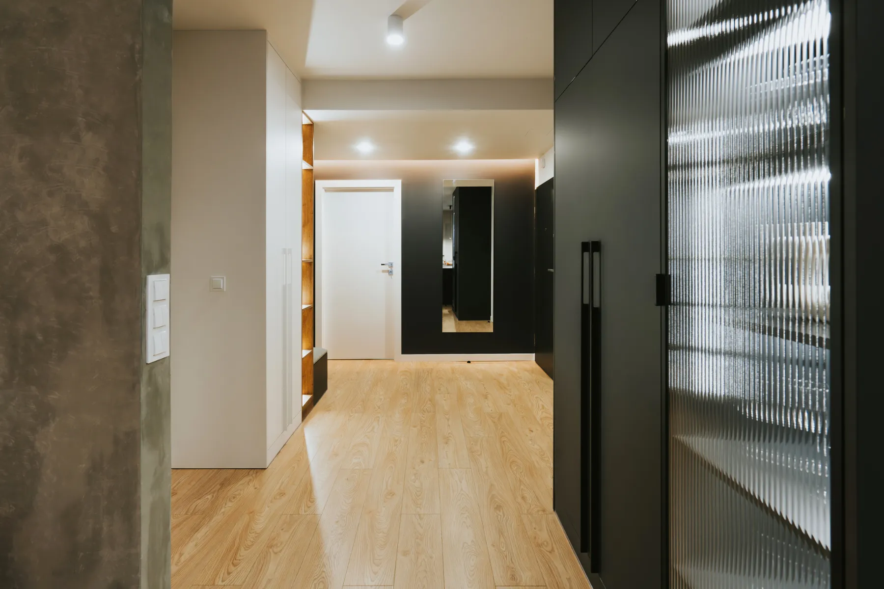 Mieszkanie było projektowane dla jednej osoby – kobiety, która chciała całkowicie przearanżować swoje mieszkanie z rynku wtórnego. Klientce najbardziej zależało na funkcjonalnych rozwiązaniach oraz otwarciu/uwolnieniu przestrzeni. Proces projektowy standardowo zaczął się od zebrania inspiracji, gdzie bardzo mocno przewijały się nowoczesne wnętrza, więc było jasne że będziemy poruszać się w tym stylu. Mieszkanie nie musiało być jasne, mogliśmy zastosować ciemniejszą kolorystykę i drewniane akcenty – ważne, aby było w nowoczesnym, ale przytulnym wydaniu.
