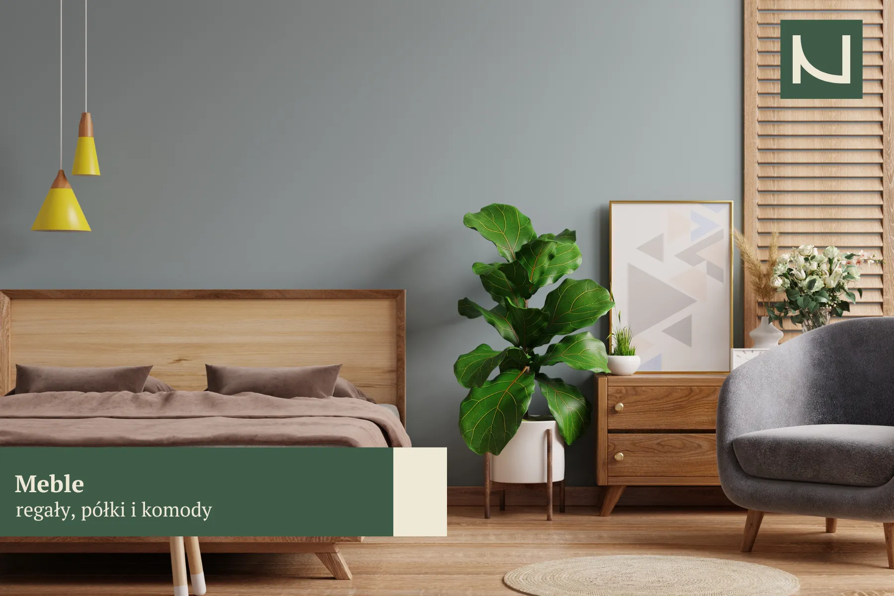 Obok kanapy postawmy wysoką roślinę w jutowym koszu. Na półkach z kolei ustawmy mniejsze sukulenty w ceramicznych doniczkach oraz pnące, bujne rośliny, jak epipremnum złociste, które będzie pięknie zdobiło ścianę.